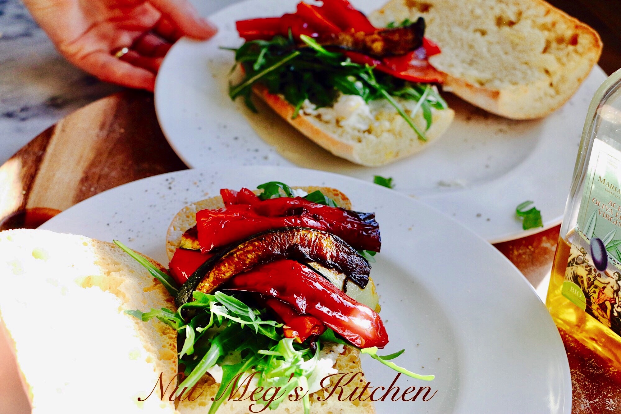 Ciabatta with Goat Cheese, Arugula, Peppers, Zucchini