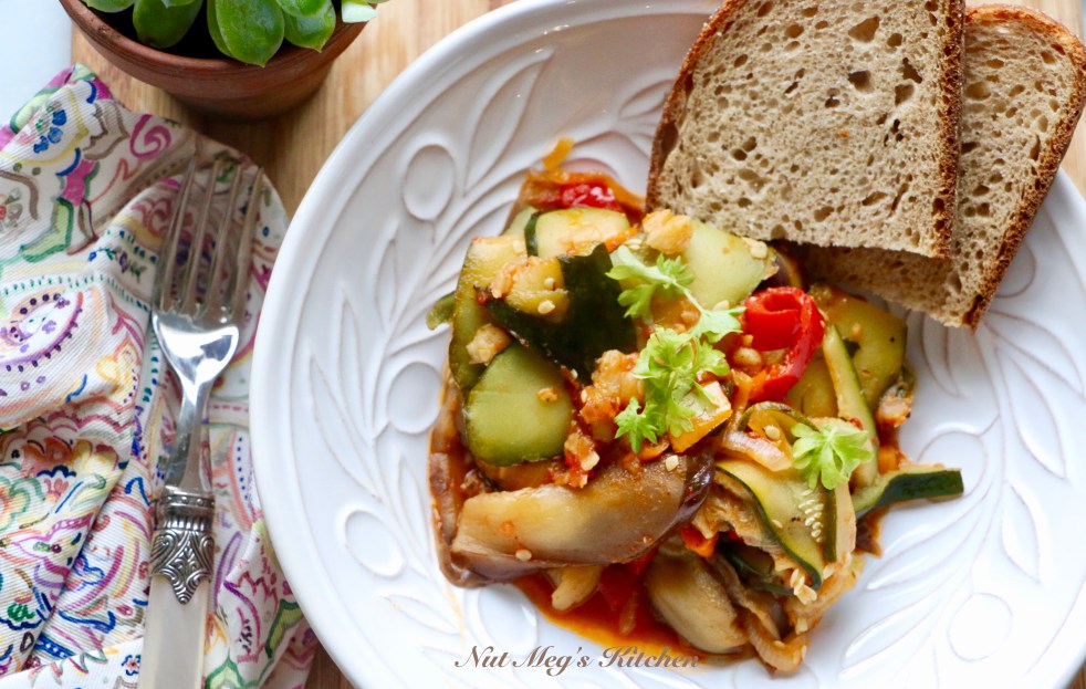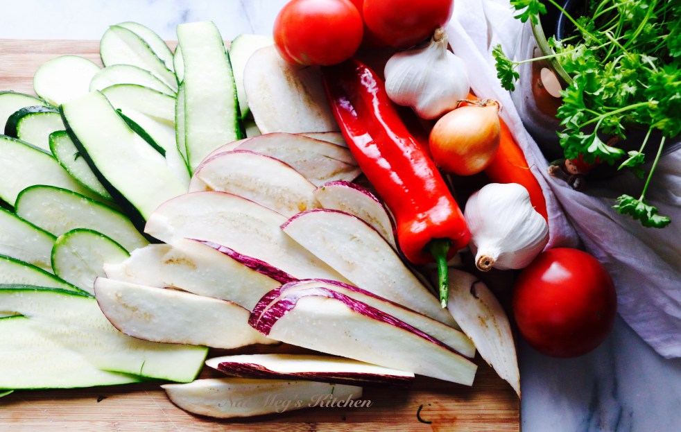 Ingredients (Serves 3) 1 yellow pepper 1 red pepper 2 medium Zucchini 1 Eggplant 1 large onion 4 garlic cloves 4 large ripe tomatoes 1 tbsp parsley salt and pepper olive oil Slice the zucchini and eggplant into strips then put them in a bowl and toss them with half a spoon of salt and…… Continue reading Ratatouille (Julia Child Inspired)